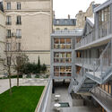 该项目位于巴黎十六区吕贝克街与博伊西埃尔街的交汇处,旨在打造马兰戈尼巴黎校区的新校区,占地约1500平方米,包含教室、礼堂、会议室、办公室等设施。通过改造和重新规划一座19世纪的古老建筑,该项目将其扩展为当代建筑和城市形态,并创造了一个促进历史建筑与现代建筑对话的新庭院。为了符合法律对开放空间和视线的要求,扩建部分被设计成围绕次级庭院的U形,次级庭院北侧由现有的共用墙围合。这片户外空间经过精心景观设计,增强了视觉联系,并将绿化融入城市肌理。