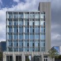 为最大限度降低建筑供暖与制冷所产生的碳足迹及运营成本,建筑西北面与东北面采用了双层表皮幕墙设计。凭借框架边缘设置的可开启通风口,该幕墙在夏冬两季均能有效提升建筑的热工效率。冬季时,这些通风口保持关闭状态,将加热后的空气留存在双层幕墙的中间腔体内,从而减少热量流失;而在温暖季节,通风口则开启以促进腔体内空气流通,使热空气排出,同时增加隔热层以抵御热量传入。此外,该系统还提升了幕墙的隔音性能,有效减少车辆噪音与风声等外部噪声干扰。