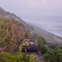 面向大海的一侧,立面由大型全宽滑动玻璃门构成,可完全打开,将建筑与海平线融为一体,消解了室内外界限,将起居区转变为半开放式露台或 “quincho”(智利特有的烧烤、聚会和社交空间)。相比之下,后部和侧面立面则采用不透明的深色松木板装饰,以保障隐私和内敛性,从而体现了亭阁的双重角色:面向景观时外向开放,面向家庭环境时则内向收敛。