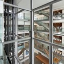 作为无论中庭还是长廊的楼梯间都拥有开放的视野,联合领导的概念受到鼓励。开放的楼梯,周边楼层上的绿洲,玻璃电梯将中庭俨然映衬为整个设施的心脏,周围的所有活动都与它息息相关。长廊是内部水平行动的总路线,这座楼的中央循环脊柱。在冬季,当港湾环境很恶劣时,中庭便成为休息,会议或者进行午餐的关键设施。