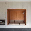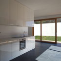 除了建筑的大小以及已经存在的两个入口,外面没有什么能暗示出这个长线条形的建筑物是为两个家庭所使用的事实。流线很简单:通过车库和很多用来储藏Alpine的工具(从登山车到越野赛车)的房间,之后沿着一道墙(墙后面有一个避风天井),再通过房子A和B到达庭院。