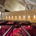 被选中的建筑结构与现有建筑的几何结构形成强烈呼应。通过划分展区,商店和酒吧划分在一个由染色的玻璃所覆盖的空间里,用来隐喻各种不同类型的葡萄酒,各个不同的功能都被清楚的划分开来,反之,它也允许对原有建筑令人印象深刻的中庭、构造和建筑风格进行欣赏,代表着Olarra酒厂以及这座建筑本身的历史和当代价值。