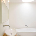 在父母所在的较高一层,书房、浴室和卧室就在从街道向运河方向的那一面。在浴室里就可以看到附近的运河,卧室与浴室处在一个空间,有连续的地板平面。