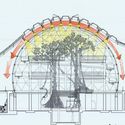 土地的含水量和热惯性现象使得博物馆的室内空间比室外凉快许多,同时也减免了首层公共区域和建筑立面上可见的研究办公室对空调的需求。