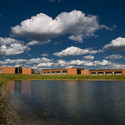 这个建筑的平面设计和周围的环境融为一体。教室在三个三角形体量内成组布置,以呼应场地特征、日照方向、景观视野以及最好的室内交通模式。庭院的自然设计使得大自然可以通过玻璃廊道渗透入建筑,同时也使得内部的使用者可以享受阳光和景观。