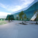 该建筑的场地位于第51和霍曼大道的拐角。该平面的组织使得学生总能够体验(学习环境)和外部(社区)的连接。学习剧场和足球场等功能框定了一个庭院,建筑好像从其中长出庭院一样。当建筑的运动继续向上,教室框定了中间部分的平面,然后在社区中心达到高潮,透过它的框架可以欣赏芝加哥的天际线,从而启发学生和社区居民来实现他们的潜力。这种上升也在教室中被模仿,即从低年级相应的升到高年级。教室用举办了世界杯的国家或大洲来命名,最新的在一楼,当中的学生最年轻,更早的则在顶层,那里的学生年纪最大。平面通过将走廊沿着大面积的玻璃外墙布置,突出了阳光、视野和社区的联系,通过走廊,里面学生的活动清楚地向外面显示出来。沿着走廊的对面,教室包括一面从地板到天花板的玻璃墙,可以让自然光充分渗透的空间,创造一个有用且高效的教学和学习环境。