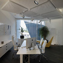 二层是给沟通调度部使用的大空间办公室,三层则是大会议室和一个全景阳台。独立的办公室及需要更多私密性的个人工作空间被螺旋状排列分布,随着螺旋的延伸各自的独立空间也随之增大。最北端的三角型区域提供给公司的运营部门,他们占有两层,上层是负责这个部门的管理者办公室。而南边的三角形区域提供给质量管理部门,同样是管理者在二层。