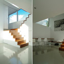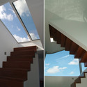 卧室降低半层不仅实现了逻辑层面向上层平台的过渡,也解决了从底层到地下室的过渡。超大开口为地下室带来日光,实现了楼层间的视觉联系。