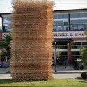 这座临时展馆利用副产品作为材料,利用来自木板切割的边缘材作为标准件创造了一个可以居住的地方。通过对材料边缘的处理,这种既非木板又非木屑的边角料成为两种状态之间的一种形态。