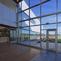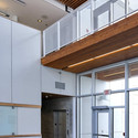 设备被分为两个正式的组件,一个消防站的翼和一个行政的翼。通过正式的姿态枢轴切断两个组件适当的磁矩的消防站翼街并结合了行政翼和西北的小溪。分离让日光穿透建筑物四周,单边走廊立面与人类的运动和活动。最低限度地详细,非程序透明体积位于两翼之间充当一个戏剧性的设施的进入两部分,中介薄盘旋的两个程序胶合桥。