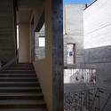 功能被分配与所有的植物中,产生了从所有区域来去的交通。折叠钢板楼梯布满整个建筑,在每层的不同的边上呈现出来,迫使形成视觉联系甚至有时不希望的视线。被地面层和夹层覆盖的空间市多功能房间,它具有大概5.45米的地形坡。