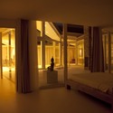 BH别墅居住着一对60岁以上的夫妇。为了优化住宅的可达性,所有项目都坐落在一楼天井周围。这个封闭的室外空间向业主提供了他们所追求的私密性。同时院子让起居空间变得明亮,并赋予它向南的立面。平面图非常开放而互相联系。院子的特殊形式扩大和缩小了室内空间,使其成为各种各样的空间。天井的立面完全是玻璃,使得别墅对内与朝外都拥有很大的视野。从起居室对面的主卧室可以看到分层的景观,透过现有路堤看到一些高大的树木作为主要的景观。起居空间的天花板以坡屋顶形式有额外的高度。这个空间的形态非常独特并很有品质。抬高这个空间的屋顶扩大了从别墅内部不同区域到现有树冠的所有视角,赋予这个场地特色。