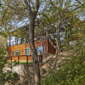 场地是树木繁茂的峡谷上方的一片陡峭的坡地,要求建筑从街上看去有着低低的轮廓,并仔细地放置体量以保存良好的景致,同时使这处相对大型的住宅显得规模适度,以同邻里相协调。