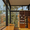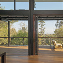 在整个住宅中,峡谷、树林、远处的海洋和海岸线的景观都经过了精心的框定,以获得最大的享受和私密性。空间向外延伸,周围的景观则不断地融入设计。入口序列通过一串严实的房间,穿过一个上有天窗的玻璃门,进入到大空间中,在从独立的厨房体量后面绕过之后,空间才最终戏剧性地打开。