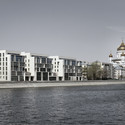 建筑群面对堤坝的一侧3个单元最前一排楼房均为5层高,而后面的楼房为6层,这样就形成了一条缩进的屋顶线条。沿着 Kursovoy pereulok 而建的4个单元为4-7层高。整个建筑构图的主要想法是基于在缩进的设施上--朝着 Kursovoy pereulok 的2个单元可以说是跳出了堤岸沿线,这些移动的楼层沿着 Kursovoy pereulok 叠加到3-4层单元上面。因此,在多层单元上的空闲空间和在单层移动单元的“痕迹”的屋顶草坪之间形成了绿地系统。
