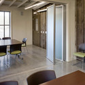 另一个重要的挑战是将采光和视野增加到一个现代化的办公室所需的水平,通过将玻璃插入屋顶天窗和大门廊中,并在建筑表皮添加新的窗户开口,得以完成上述要求。工业塑钢窗墙被安在室内,让光线和视线得以进一步地在划分的区域之间进行传递。但是,决定建筑性格的重要特征,如内墙上年代久远的木壁板,经过恢复和维护,带来了自然侵蚀纹理和现代材料之间的动态对比。