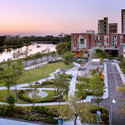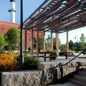 这座新建的廊架被用于为座椅这样以及社区集体活动。它位于滨河公园旁,可以眺望到查尔斯河的景观。设计主要的挑战是如何从多种途径解决为哈佛大学室外的电梯井进行重新设计,以及如何应对场地上从地下车库突出上来的杆状结构。(车库及电梯井是被其他单位建造)
