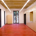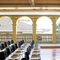 改善的遗产的意愿在决策建筑物的内部上延续下来,并在构造的解决方案和集成设施的实施方法上也有体现。项目的开间安排,让空间从隔墙中释放出来,它允许人们能够清晰地阅读传统的建筑结构。在大部分的空间中,木梁天花板得到了巩固和加强,就像历史墙上斑驳的结构,而避免了太过“精致”的干预,以免歪曲历史的表层。同样,位于甲板下面的多功能室,尽管它已经翻新但仍得到了尊重,山墙屋顶的形状,木材结构和作为一个传统的内部和外部之间的混合空间存在的画廊,也是重要的气候条件影响。画廊和服务主体不与甲板直接连通,可以作为一个整体识别并进一步加强传统的形象。