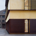 有必要给旧建筑的外部形象更多的代表性,但是在没有“破坏性”它最重要的历史价值的前提下。立面上的项目试图把现代与传统形象结合起来。这双重挑战被转译成双重表皮。历史上的表皮仍然是和以前一样,南立面被整体性恢复了。第二层表皮,木材板的网格,被重叠在之前的体量上而没有改变它,并作为额外的干预,隐藏新的窗户并控制光的射入。这些新“洞”保持了现有洞口的比例。