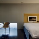 公共走廊的天花板覆盖着七米长的来自Shun Kawakami的作品。此外,有效的照明设计也使作品脱颖而出,二者的结合提高了人们对客房的期望。