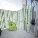 移动起居生活区到顶楼的结果是好像阁楼般的生活空间充满光照通过新的“窗口的城市”。内部的地板铺满阳台,如同茧状纺织墙使得内部和外部空间融为一体。