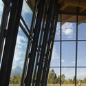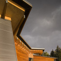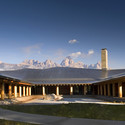 新的克雷格托马斯发现和旅客服务中心沿着蛇河河岸林座落在山艾树草丛之上。穿过云杉,杨木和白杨树林,走近一处充满吸引力的庭院,它提供了广阔的怀俄明州风景,这里是一个平静和亲密的地方。这个按比例构建的户外空间,为人群聚会和导向提供场地。屋顶倾斜向上,远离庭院,锯齿状边缘朝向提顿山脉。