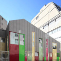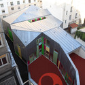 在这个小小的场地上,不可能向两个高高的邻近建筑挑战,它们分别有6层和9层高。这是因为幼儿园很难是超过2层的。而嵌入相邻的建筑中更会强调了高度的比例失调。