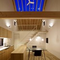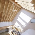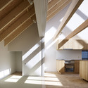 屋顶设置了用于自然采光的大天窗,提供了一个净高充足、通风良好的空间。我们在背对外立面的方向设计了一处开放空间,这一空间可以确保住户的隐私,将内部空间从外部环境中隔离开。建筑南北两侧有用于通风和采光的开窗。