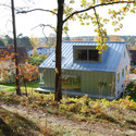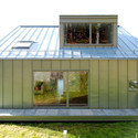 锌板立面的灰色调与针叶林带有金属质感的绿色相互融合。