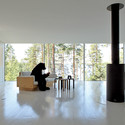 所有特定的功能空间紧凑,聚集在一个很大的客厅周围,向宏伟的湖景开敞。安静的壁炉和卧室是私密空间,可以关闭或打开连接到共同的中央空间,它具有简单的螺旋形态和滑动墙。建筑的内部是白色的,给予房间光线和颜色的变化,不同季节的景观也可以呈现。