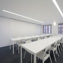 由于有这样一个大型的增建部分,建筑师试图避免增添更多的显得刻意的体块变化。他们旨在将建筑作为一个单一体量。完成这一点部分是通过竖直铝百叶外遮阳系统实现的,这也解决了原有建筑时常被干扰的问题。这些百叶还塑造了室内的光线,连续的中性地面将退休之家统一,突出了被过滤的外部自然光的各种不同之处。