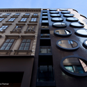 这是由BWM Architekten事务所和其伙伴设计的位于奥地利维也纳的一个酒店项目,建筑就像一个闪闪发光的蓝色宝石。它使用了布朗马赛克表面,可以吸收和反射自然光线,从而保证了该建筑是维也纳最小的建筑之一,也是一个真正的标志性建筑。设计的特点是引人注目的那些微突出的椭圆窗口。