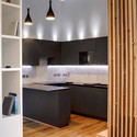 长条状的木片板装饰与裸露的原始砖墙新橡木地板形成反差。厨房和卫浴空间由马赛克装饰。设计师为整体空间量身打造木材装饰,家具,以及厨卫柜台,提供了一个具有高储存量的平静空间。