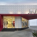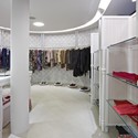 这家服装店遵循了高和低的格调,采用一些得到认可的、年轻、概念和基本的品牌进行对立的组合。这个概念通过色彩、材料和质感的反差,在建筑的室内延续。店铺的正面采用了40x40cm的格子,其间插入了一个金属材质的红色的梁。