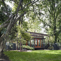 茶室位于一栋郊区住宅的枝叶茂盛后院中。采用青铜与玻璃建成的这一新结构引用了日本灯笼的形态,功能上作为一个茶室与冥想空间,以及家庭的音乐演奏会舞台。这一项目最近获得了2010华盛顿AIA荣誉奖。