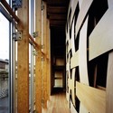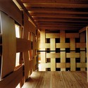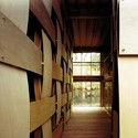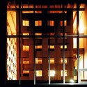 如果日光变弱,与场地的石墙建立联系的结构剪力墙的形状就会投射到玻璃立面上。