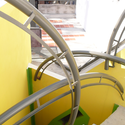 每个单元都有一个庭院或露台向户外延伸,并都归到各自的小房子里。各单元之间是通过围绕一个共同的三角形庭院的内部楼梯而相连。进入四合院的光线在墙上的窗户中间穿过。这里也是唯一的一个大家可以经过的地方。