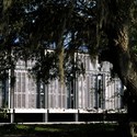 这所房子,曾获得AIA住宅奖,是由Frank Harmon Architect设计,想轻轻地立在这片郁郁葱葱的土地上,并唤起生活在户外的感觉。长条形状和一个房间进深的平面布局在场地上创造了一个细长的足迹,并给予每个房间窗户和可俯瞰小溪的门廊。可开启的窗户提供自然空气对流和照明。靠近房子,在覆盖着苔藓的橡树下,走上一个轻微的斜坡,就可以看到沼泽的风景——充满了蓝色的苍鹭和睡莲——像一个出现在日本的绘画里的元素。查尔斯顿对于历史遮蔽物的现代诠释可以保护房子不受恶劣的天气和夏天的太阳影响。