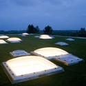 现有池已经有了新的外墙和新的绿色屋顶,其间点缀着一系列的方形开口。窗孔这种相互作用产生的光反射形成优美的舞蹈。