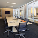 首先,设计小组剥离建筑直到裸露出混凝土楼板,并暴露出其令人印象深刻的水泥蘑菇柱。接下来,一个2层楼高的中庭和大堂贯穿整个建筑,形成对Myrtle Edwards公园,Elliott湾和奥林匹克山的观景。中庭的外围是由设置在简洁、石膏抹灰的柱子之间的通高的玻璃墙围成的,而光滑电缆栏杆的桥梁连接了中庭二楼的长廊。精心细致简约的建筑元素——白色水磨石地板和不锈钢配件与大量使用的灰镶板相衬。一系列的雪茄形吊灯延长中庭的长度和并使得空间更为生动。接待区是由皮革软垫休息座椅和竹台组成。一个完全配备的会议室可俯瞰大堂,并提供给所有建筑的租户。