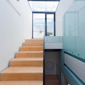 内部空间采用错层的设计,中央楼梯连接着两个部分。采用波纹表面加上充足的玻璃表面放大宽敞的感觉,增加了有限的表皮包裹下的体积。这表达了大众形式以外的一个创新低额形象,一个离散的小尺度的建筑。
