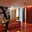 纳入到天顶的照明设备对于室内空间的气氛营造也发挥了重要作用,再加上一系列球型的挂灯,这个等候室的氛围得以很好的因造出来。