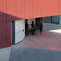 建筑使用钢材来展现纯粹无杂物的入口序列。复合甲板层耐用且易于组装。为了创造最佳的净高,我们采用了集成梁体系。结构从侧面支撑着金属面板。