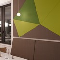 雕琢精细的天花板由吸声面板组成,覆盖了空调设备,同时与家具设计相协调。
