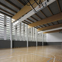 这个综合体育馆是一个体积不均匀的建筑。它的半透明围墙是由黑色混凝土与玻璃构成的,试图描述日益变化的城市与自然山峦之间发生的不同故事。