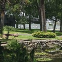 户外的墙壁划分出露天平台和在茂密树林和雕塑花园间作为艺术景观的池塘。