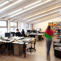 工作室在院子后面,可通过旧公寓楼从街上进入,旧建筑剩下的3面石砖墙安放在院子的边上。新结构,实木框架等形成的新空间代替了老结构空间。所有结构木材上都覆盖了耐火水泥面板。