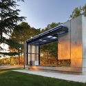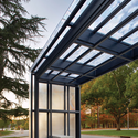这个候车亭是一个简单而又优雅的建筑结构,由两种在取材上对比鲜明的元素构成:厚重的现浇混凝土墙作为候车亭的主体结构和长凳,而钢架遮篷是在场外制造、用卡车运输过来现场安装的。从立面上与剖面上来看,墙体都与遮篷互相结合形成了一个双“L”形。遮篷表皮在这里采用了层压聚碳酸酯材料,进一步体现出遮篷的轻盈与通透。