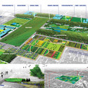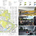 这个方案是要将工业园转换为一个新的创新公园,设计师通过负责任的设计专注于社区成员和当地经济。方案包括人造湖泊和公共户外展馆的建设。