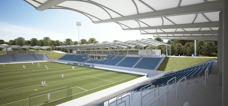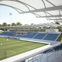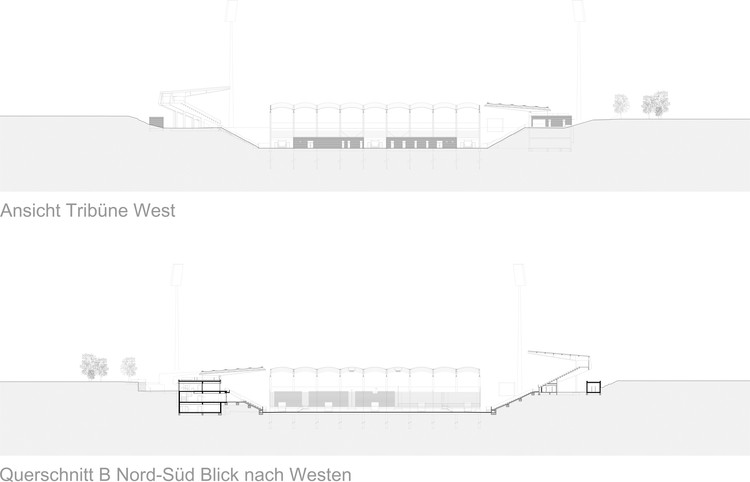 为使体育场在未来符合现代乙级足球联赛场馆DFL标准,建筑师从现有建筑的几何形式入手,将其分为四个部分。现有的体育场基地7.70米高平面之上将兴建一座新的主赛场平面。四座看台中的三座将重新规划,出于优化观赛视野的考虑,看台将向赛场方向进行8.5米至10米距离不等的推进。在球赛举行期间,球迷们可以更近距离感受赛场上激烈的比赛气氛。